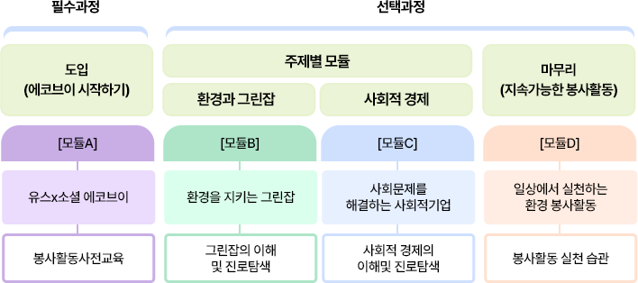 심화교육 : 기후위기의 영향, 탄소중립 이해 및 실천방법, 자원봉사와 기후위기 대응, 사례탐구